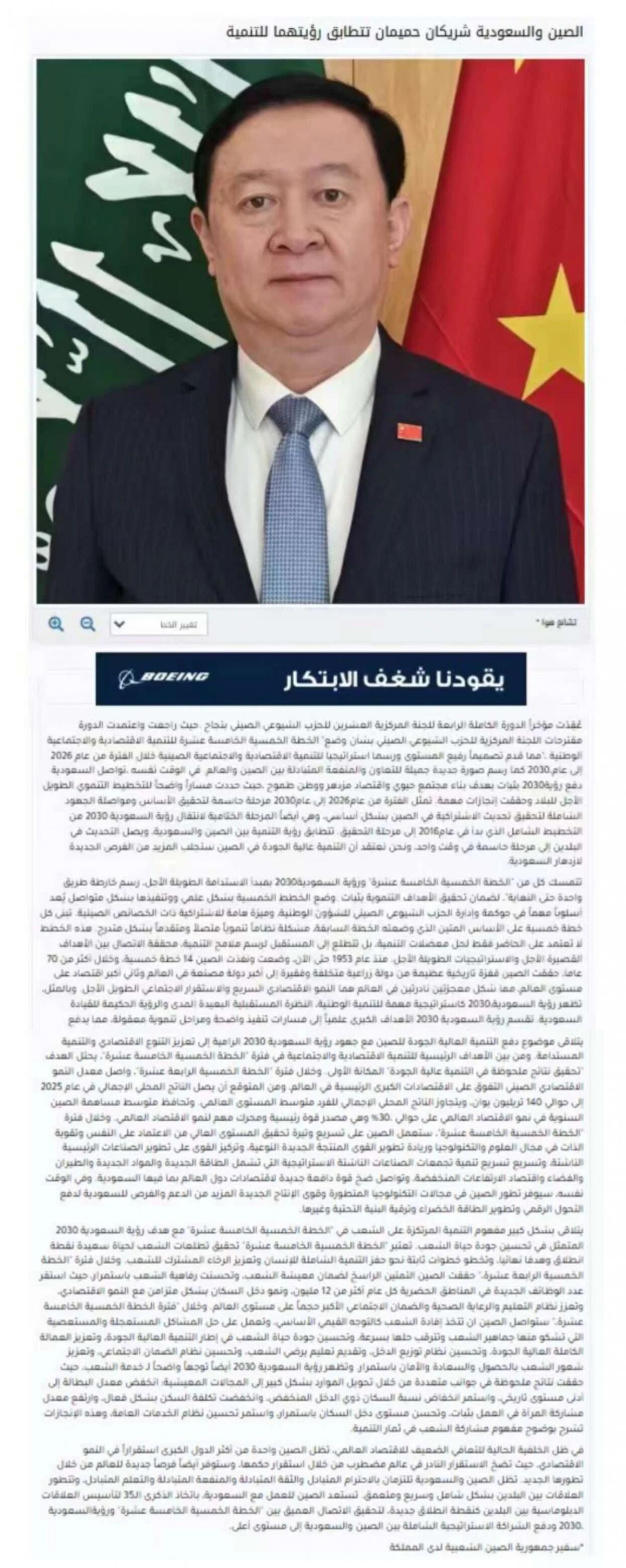 2025年11月20日,驻沙特大使常华在沙主流媒体《利雅得报》发表署名文章《中国和沙特是发展理念相近的好伙伴》,全文如下: